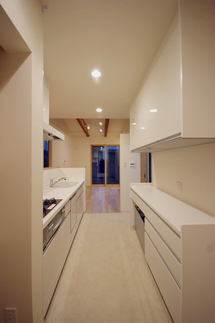 キッチンの奥には洗面所とお風呂。 家事がしやすいように、と奥様のご希望。